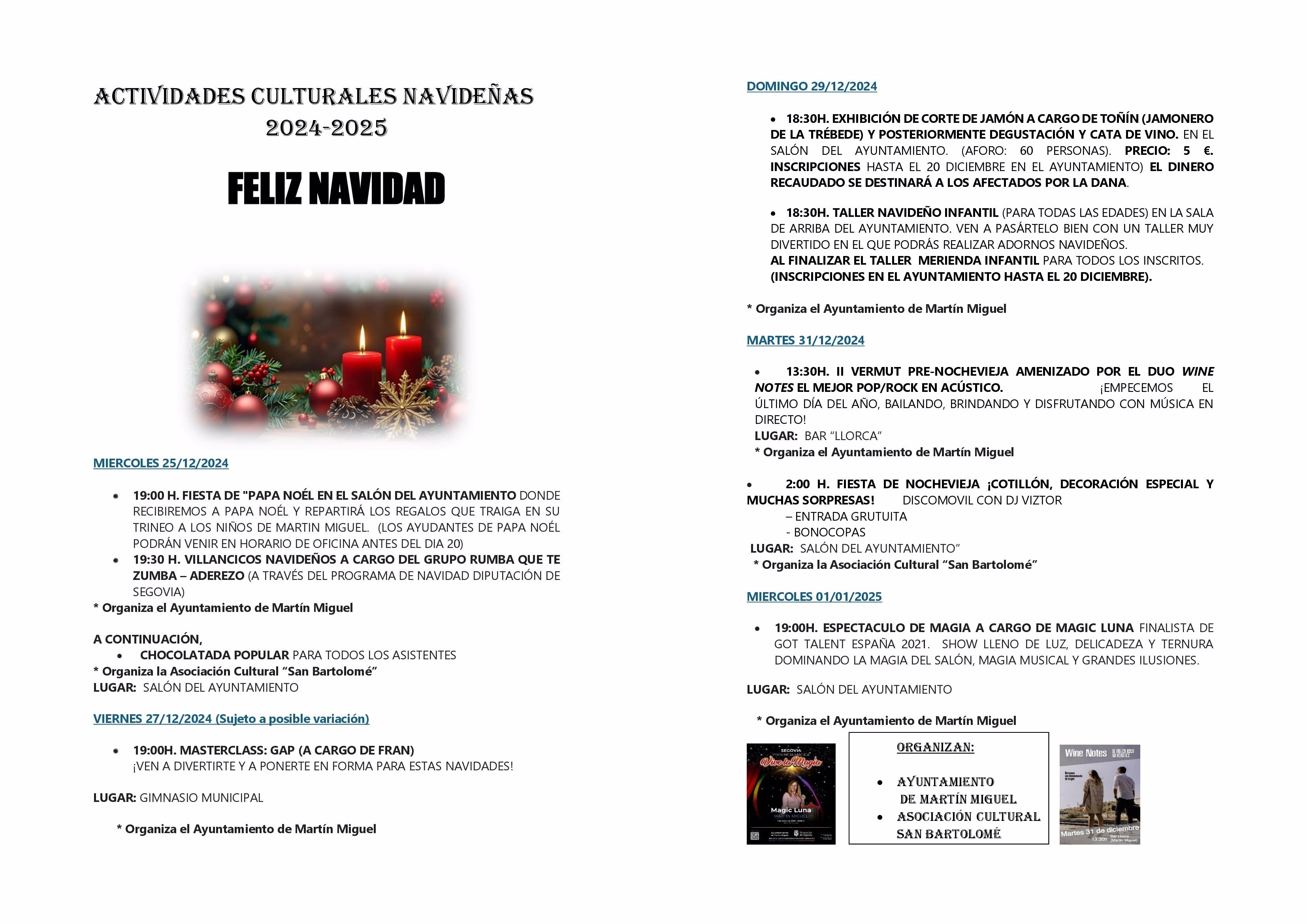 Navidad en Martín Miguel Navidad en Martín Miguel Programa Navideño repleto de actividades para todas las edades con magia, villancicos, talleres y fiesta. Documentos Cartel Navidad 2024.pdf (pdf 1,2 MB)