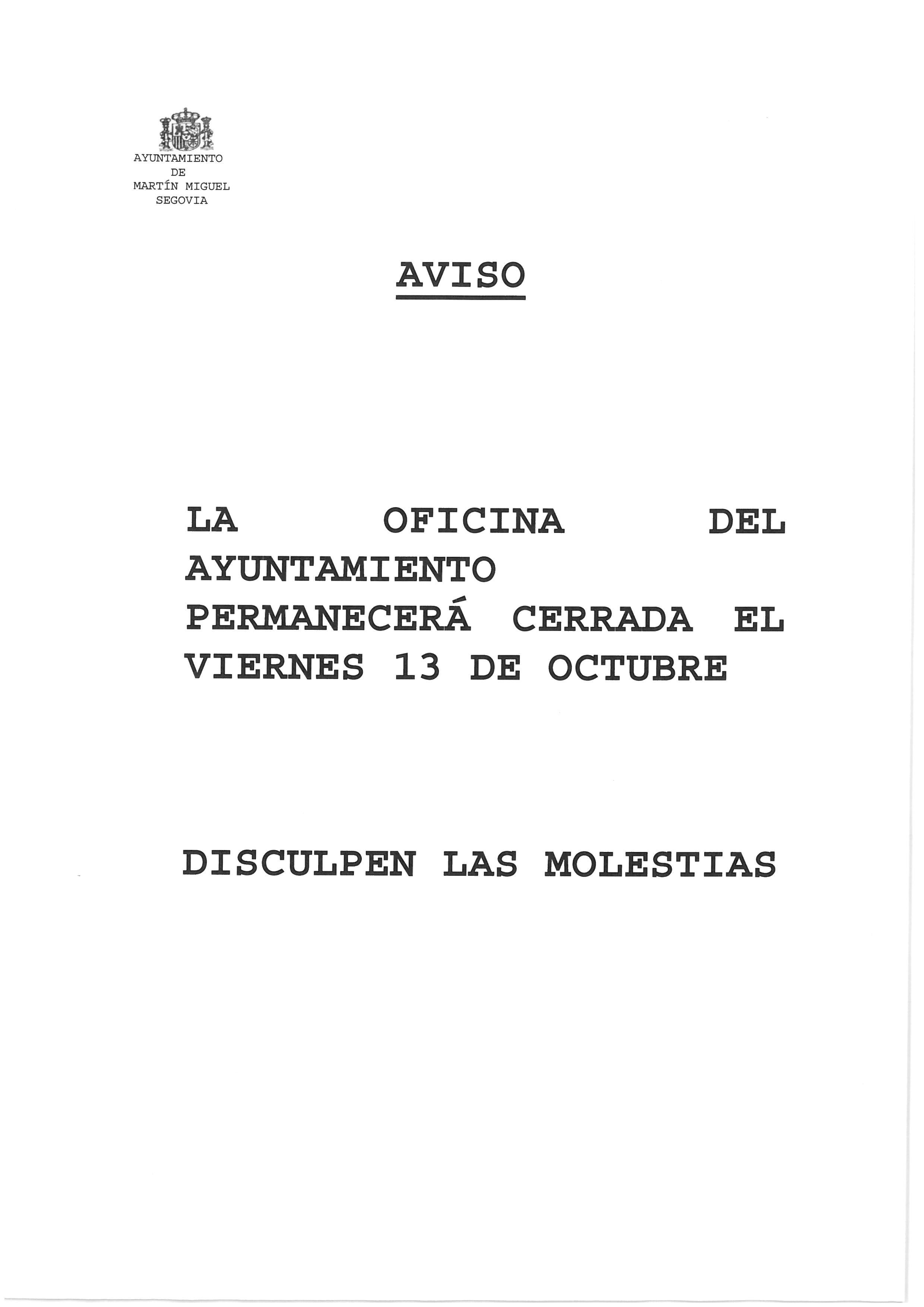 CIERRE DE OFICINA DEL AYUNTAMIENTO